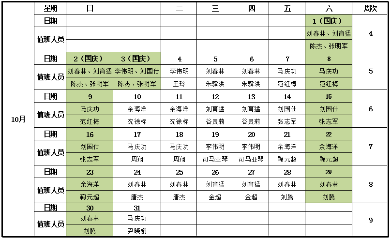 中层干部非工作日值班:白天(8:30-11:30 ,13:30-17:30, 18:30-20:30)须全程在怀德楼办公室921室,晚上在各自公寓。