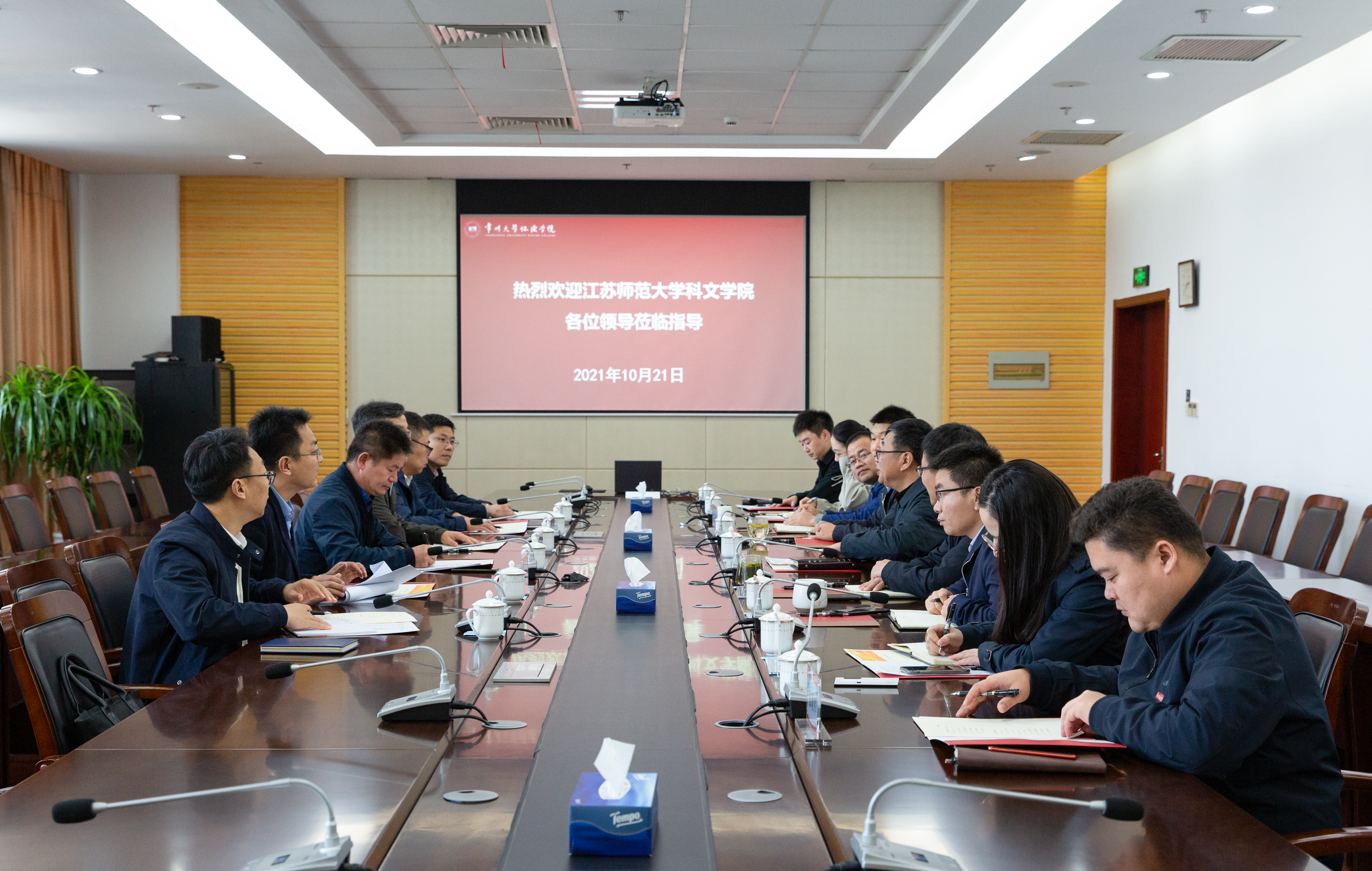 10月21日下午,江苏师范大学科文学院党委书记张立荣、院长胡福年一行来必赢官网调研交流,院长刘春林,院党委副书记、副院长刘茂灿,副院长王峰、余海洋,院长助理马庆功和相关部门负责人出席会议。交流会由刘春林主持。