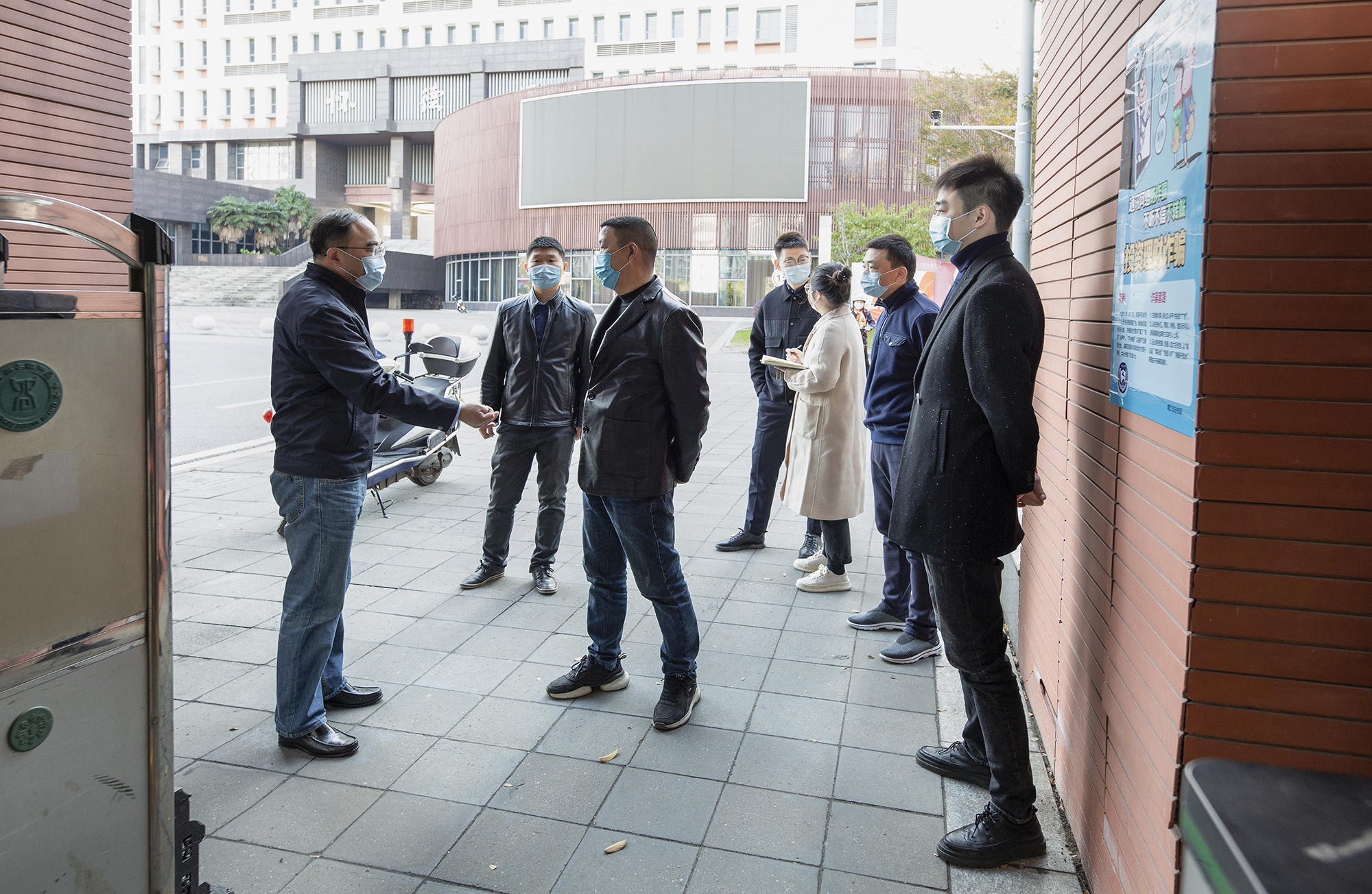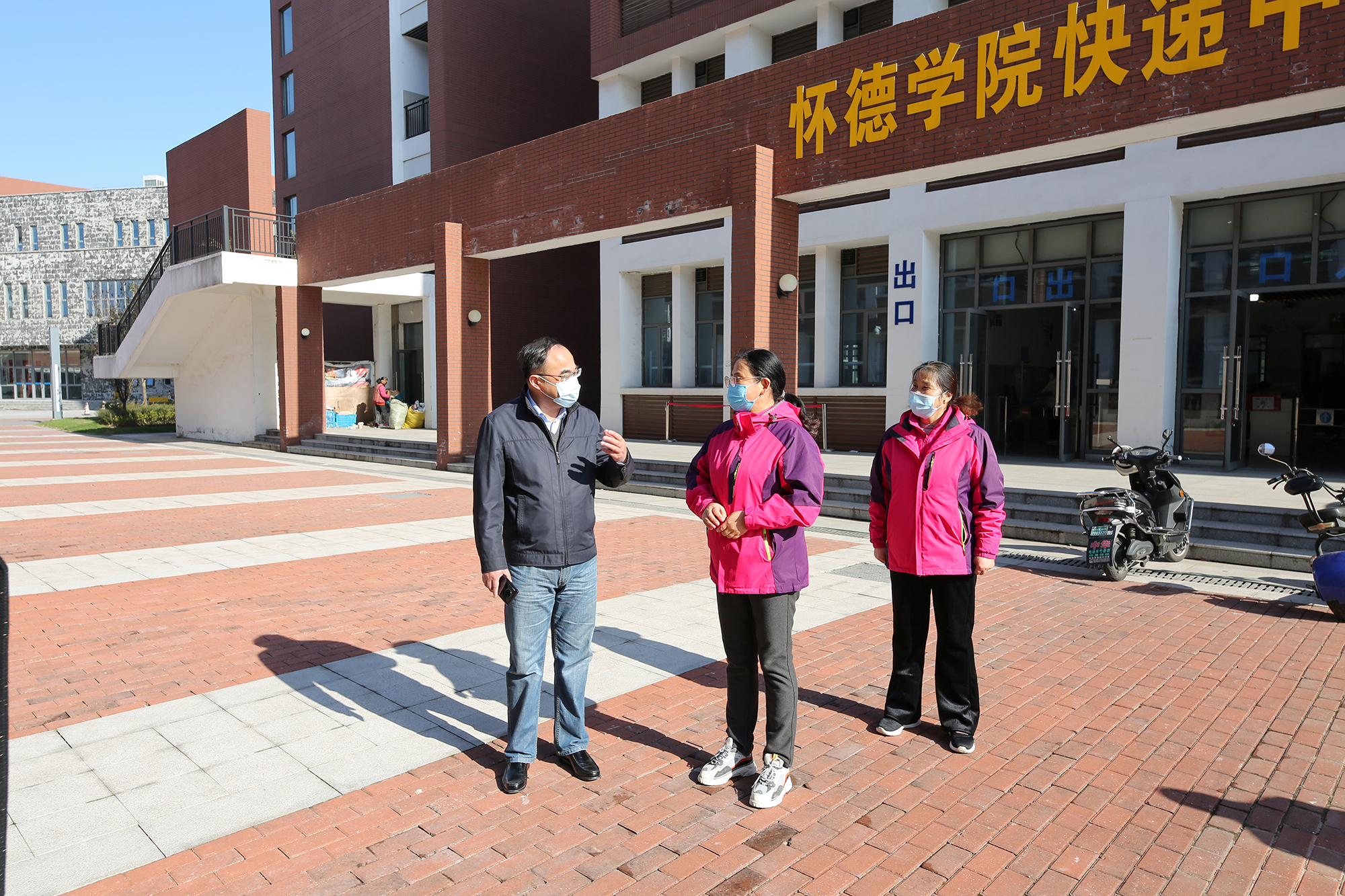 11月10日,院党委书记李伟明、副院长王峰带领相关职能部门、物业公司负责人深入校园实地检查指导疫情防控工作,看望慰问坚守一线岗位的工作人员,并就如何进一步做好下一步工作提出具体要求。
