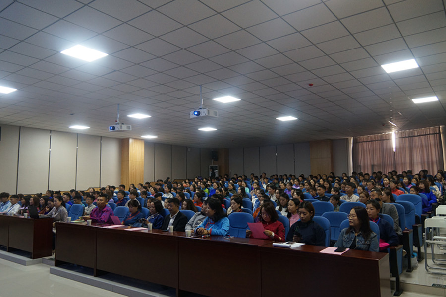 2019年9月14日上午,taptap点点体育2019级新生开学典礼在学生事务中心一楼报告厅隆重举行。学院党总支书记白宝成、副院长聚宝、蒙古语言文学系主任元成、翻译系主任、2019级翻译班班主任乌云塔娜、综合办公室主任、2019级蒙古语言文学专业一班班主任包小、教务与科研办公室主任富荣、学生工作与就业办公室主任都日斯嘎拉图、团总支负责人、2019级蒙古语言文学专业三班班主任赵福财、2019级蒙古语言文学专业二班班主任祎丽琦以及包乌云、斯琴图、哈斯图力古尔、乌吉斯古楞、李华、乌兰、朝鲁孟其木格、玛瑙花等老师出席仪式。taptap点点官网优秀毕业生、内蒙古自治区教学研究室教研员、中学高级教师毕力贡格日勒应邀出席仪式。2019级全体本科生、硕士研究生、博士研究生参加仪式。仪式由学院党总支副书记、副院长乌日其木格主持。